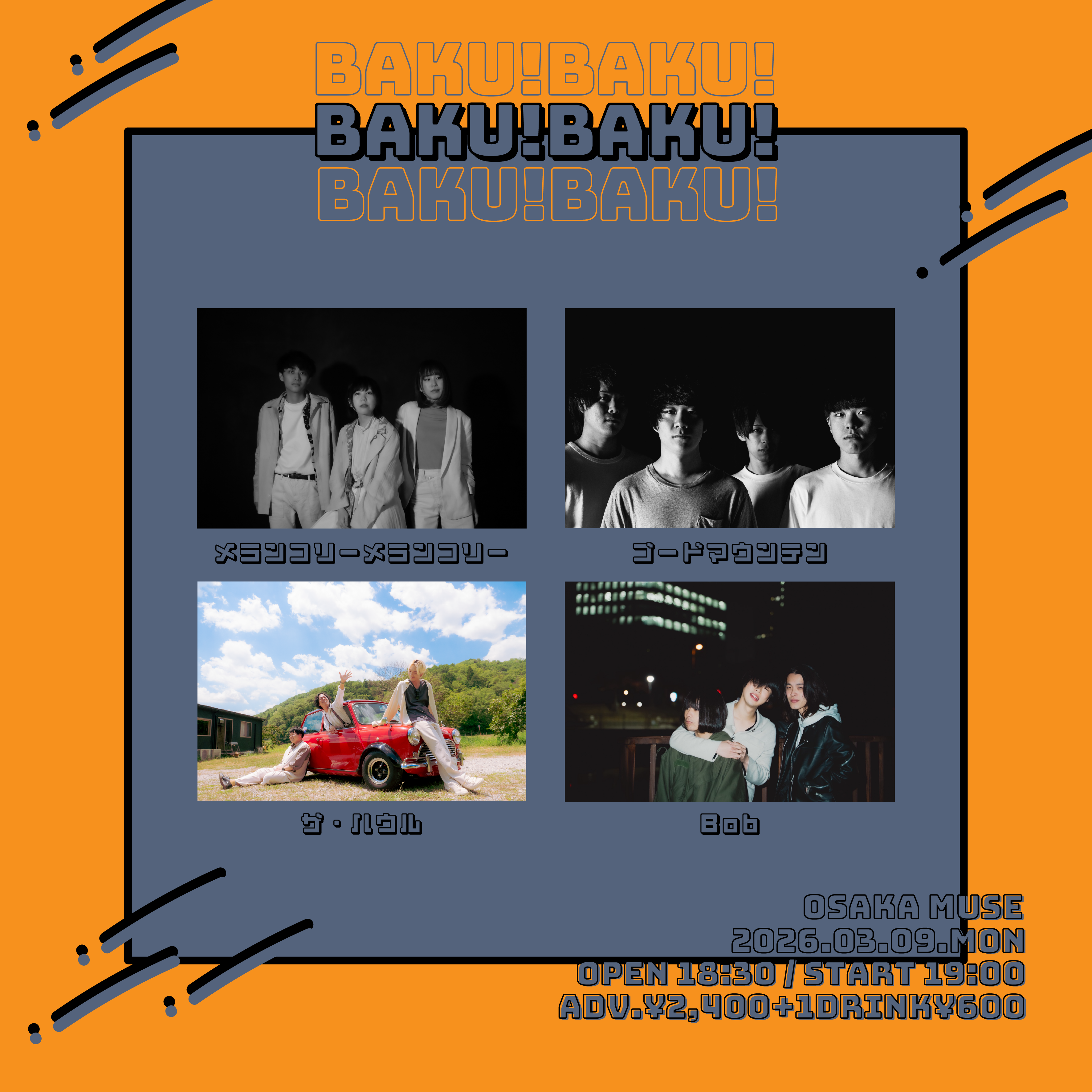 - PRICEADV.¥7,500 / DOO.¥ ¥8,500 入場時ドリンク代別途¥600必要