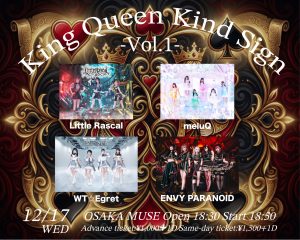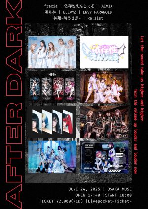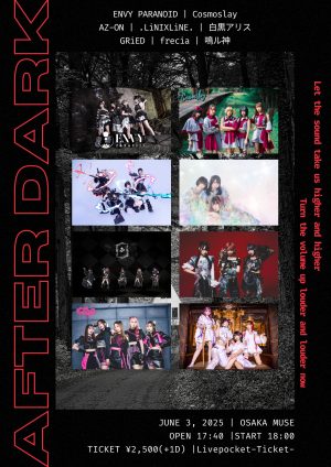 - PRICEVIP ¥50,000 / S ¥10,000 / 一般 ¥1,500 / 招待 ¥1,000 入場時ドリンク代別途¥600必要