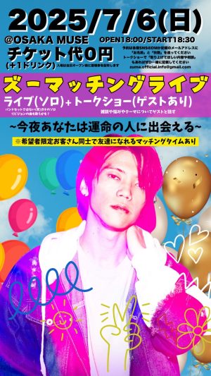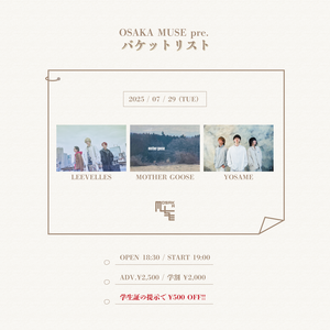 - PRICEADV.¥2,900 / 学割¥1,400(要学生証提示) / DOOR.¥3,400 入場時ドリンク代別途¥600必要
