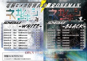 4.26 SUN 電脳ヒメカ特別衣装限定ONEMAN「ネガイボシ-白-」第6戦 電脳ヒメカ TIMEOPEN 17:00 / START 17:30 PRICE特典付き前売チケット ¥4,000 / 当日 ¥0 入場時ドリンク代別途¥600必要 TICKET