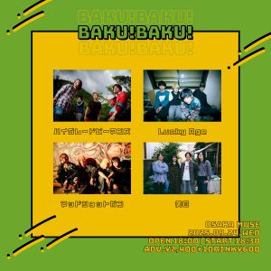 - PRICEADV.¥2,000 / DOOR.¥2,500 入場時ドリンク代別途¥600必要